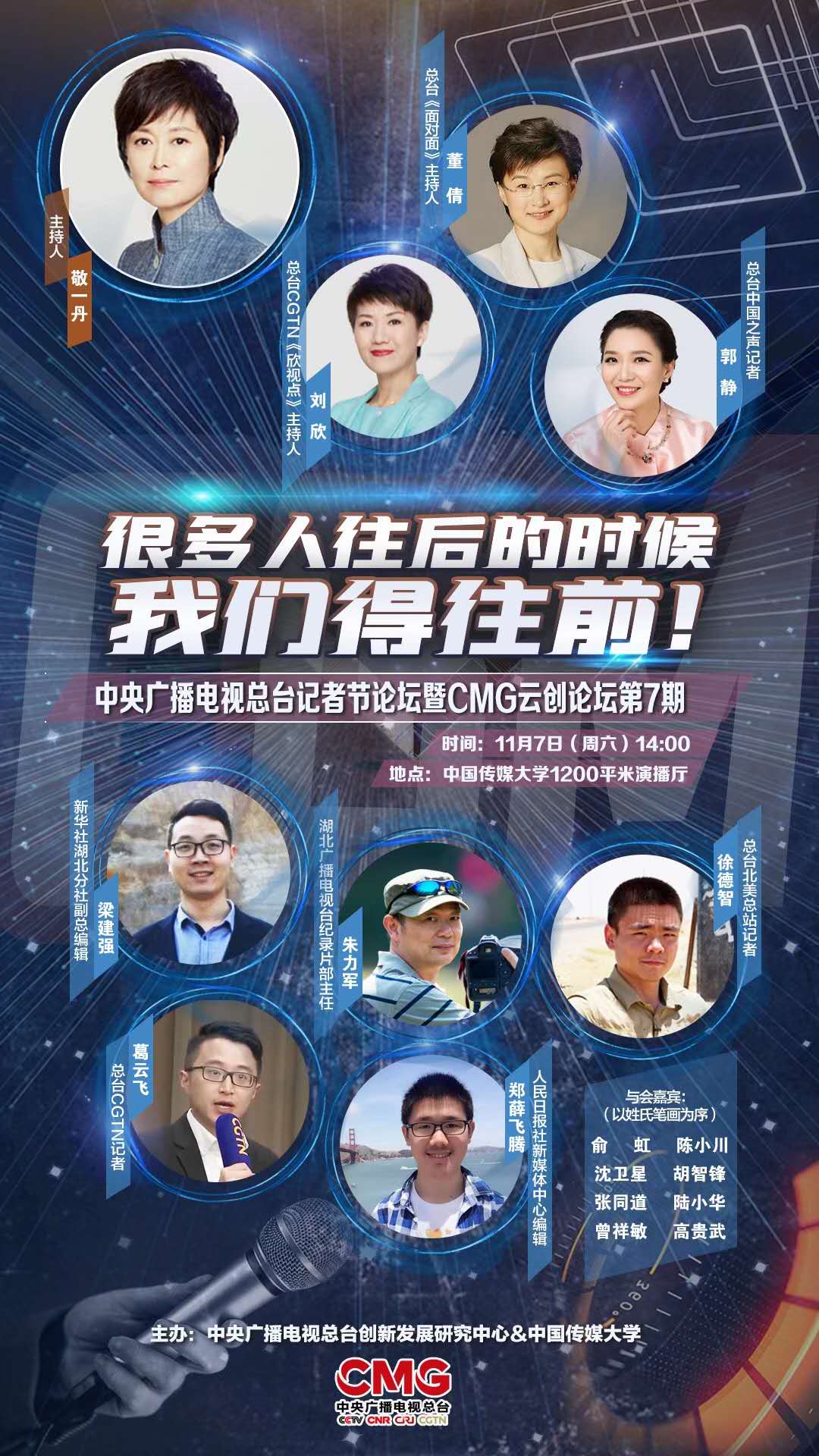 11月7日,中央广播电视总台记者节论坛暨CMG云创论坛第7期在中国传媒大学1200平米演播厅举行,论坛由中央广播电视总台创新发展研究中心与中国传媒大学共同主办,敬一丹主持,并在全网同步直播。论坛邀请多位记者和来自全国多个知名高校、知名机构的专家学者参加,天津大学新媒体与传播学院院长陆小华作为点评嘉宾参与此次论坛。