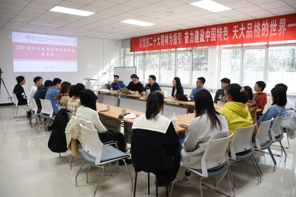 新学期,新气象!3月2日下午,2021级研究生组织新学期第一次主题班会,学院党委书记王赞、副书记李晋馥、班主任邵明来和辅导员刘衡参加本次主题班会。