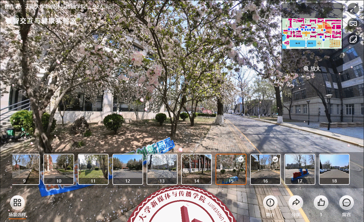 “春回天大看海棠”,2023年4月2日,“天大·海棠季”校园开放日活动在天津大学双校区举行,学生家长、校友、社会各界人士到访天大,与在校师生共赏千株海棠盛放美景。为留住这个浪漫的春天,将这份美好保留在云端,天津大学新媒体与传播学院数智交互与健康实验室,特对卫津路校区第九教学楼、铭德道等多个场景进行拍摄,利用虚拟现实技术进行场景重建,将天大海棠美景搬到线上,真正实现“春花烂漫何处望,携友云上同去游”的美好愿景。