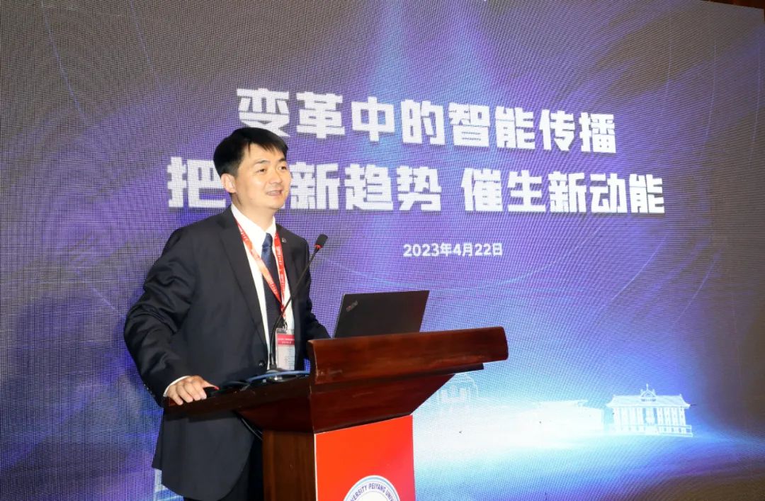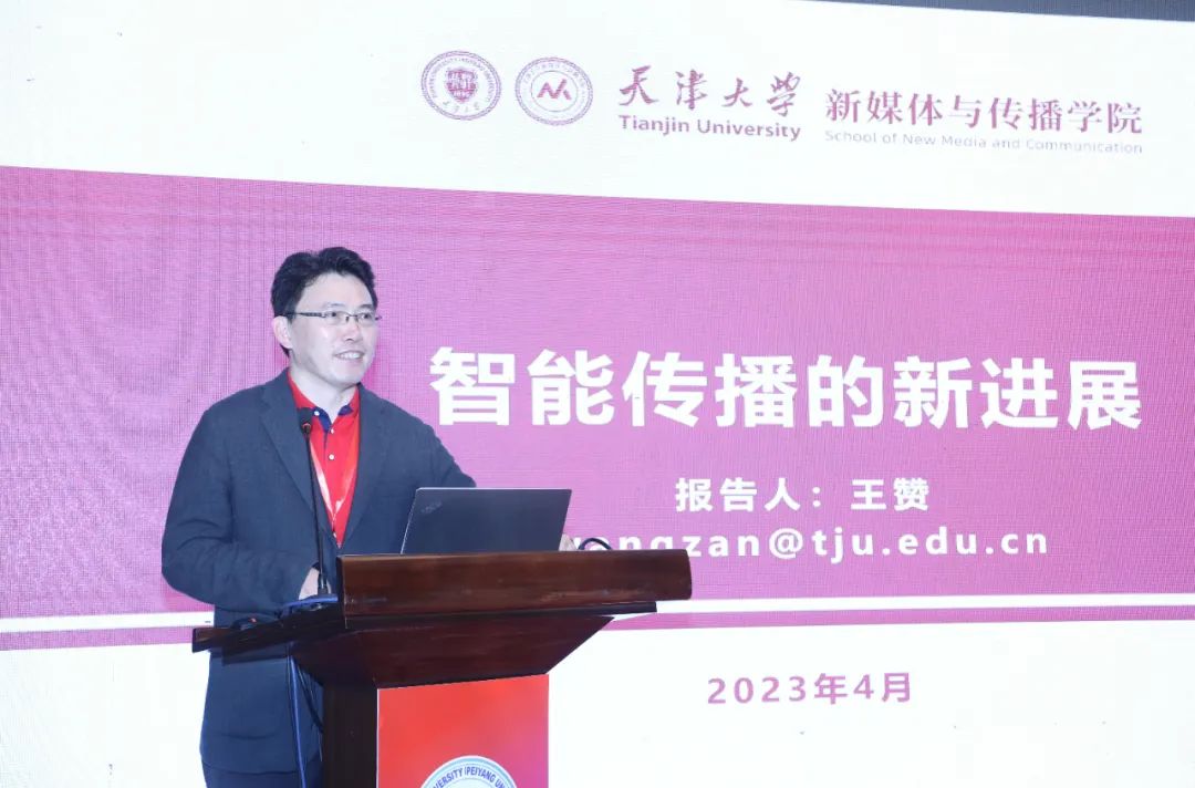 天津大学新媒体与传播学院党委书记王赞教授作题为“智能传播的新进展”的主题报告,王赞向与会来宾介绍了学院近年来的发展概况和优势特色,并从智能技术与新闻的融合、智能技术与传播的融合、智能技术与传播反馈的融合等角度展望了对于加强全媒体传播体系建设、推动形成良好网络生态的思考。