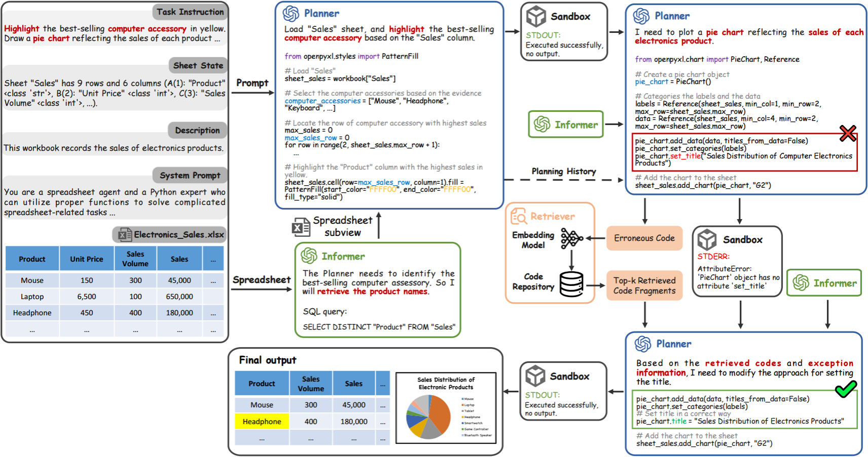 (通讯员 李娜)近日,新媒体与传播学院电子信息专业2023级硕士研究生陈逸彬在大语言模型驱动的智能体应用研究方面取得重要进展,其论文《SheetAgent: Towards a Generalist Agent for Spreadsheet Reasoning and Manipulation via Large Language Models》被CCF-A类国际顶级学术会议ACMWWW接收,并获口头报告(oralpresentation)资格,其指导教师为学院英才副教授郑岩。