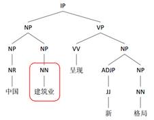 1.中文基础语言分析技术,包括中文分词,词性标注,句法分析等任务。如下图所示例子,给定一段原始文本“中国建筑业呈现新格局”,中文分词将句子切割成词序列,形成“中国 建筑业 呈现 新 格局”;进一步词性标注为每个词标注词的属性,比如NR表示专有名词,NN表示普通名词,VV表示动词,JJ表示形容词;然后句法分析用于解析句子结构信息,比如“中国 建筑业”形成一个名词短语NP,而“呈现 新 格局”表示一个动词短语VP,名词短语和动词短语组合成一个句子。