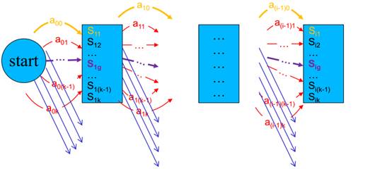 3. 基于转移的端到端结构学习模型。自然语言处理的任务,例如词法分析、句法分析、细粒度文本情感分析等,其输出一般为序列或者树图结构,这一类任务又称为结构预测任务。基于转移的结构学习算法将这类结构预测任务转换成为序列到序列(Sequence-to-Sequence)的问题,将任务解码变成一系列动作序列,并结合柱搜索和全局优化算法,如下图所示,其中a为动作,柱大小为k。任何结构预测任务均可以用这一统一的框架进行建模,并且其性能也能具有很强的竞争能力,达到目前领先水平。