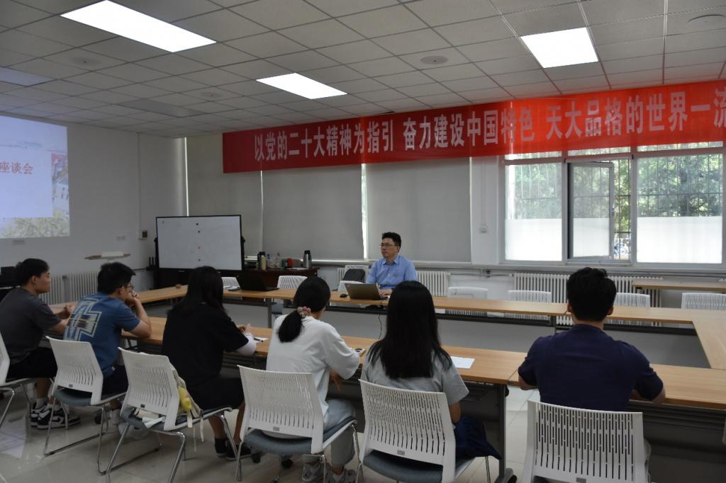党课之后,围绕“智能传播背景下复合型新闻传播人才培养”等题目,王赞与在场2021级研究生进行座谈,调研学生对学院人才培养的意见建议。面对即将进入毕业季的第二届新媒体学院学子,王赞深入了解学生科研进度、论文发表情况、就业意向等。此外,围绕学生们关心的毕业审核、求职环境等关键问题,一一为学生答疑解惑。